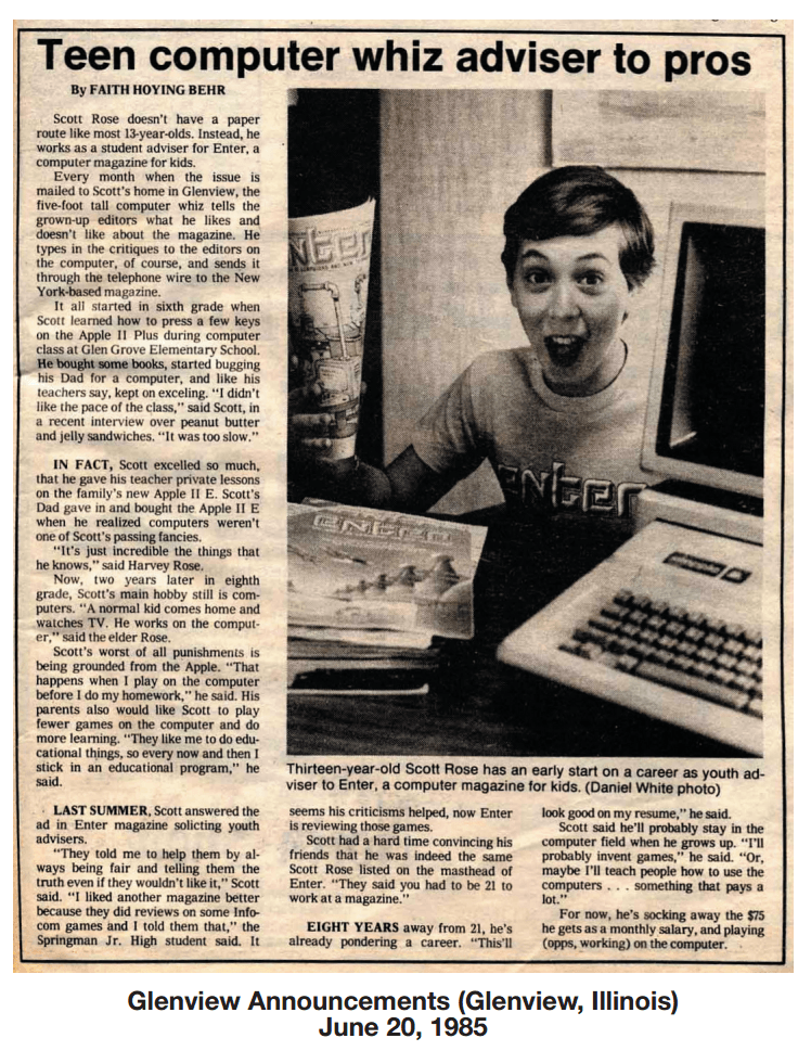На самом деле, я любил электронную почту потому, что уже в 13 лет писал статьи для одного из первых компьютерных журналов Enter, который купил для меня модем и оплачивал мой счет в CompuServe. Поскольку платил не я, каждый день я подключался к системе на несколько часов. Все свои статьи я должен был отправлять в редакцию журнала только через CompuServe.