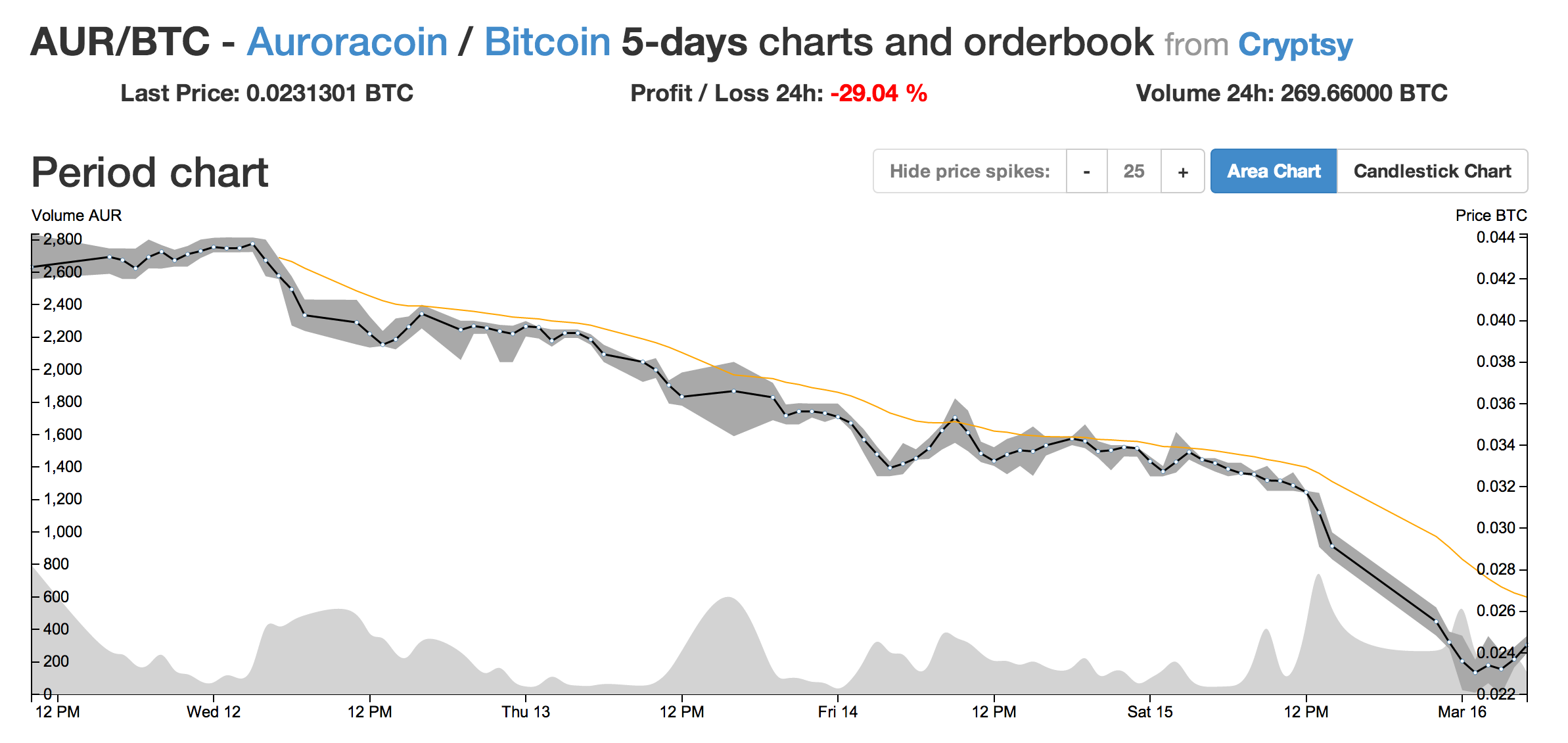 Без поддержки местных госорганов, мы имеем просто очередной форк Лайткойна с огромным премайном и без особых претензий на оригинальность. Информация о решении комитета мгновенно отразилась на курсе Auroracoin, который начал затяжное падение. Так что, похоже, что хитрый робингудовский план Одинссона с треском провалился.