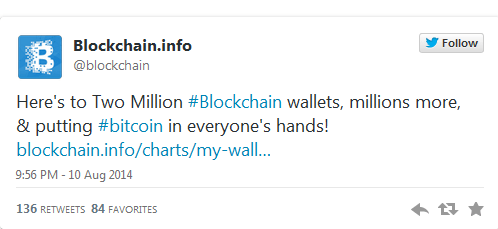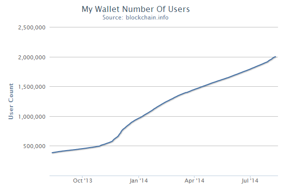Наконец, сайт перешел за миллионный рубеж в январе 2014. А уже в апреле было активировано 1.5 миллиона кошельков. Другими словами, количество кошельков было удвоено примерно за шесть месяцев. Смит отметил, что рост количества загрузок стал «просто взрывным” в прошедшем июле. Это произошло после того как кошелёк-приложение Blockchain.info для iOS был обновлён и появился в магазине приложений Apple. В начале лета компания также обновила свой кошелёк для системы Android, добавив некоторые функции для удобства продавцов.