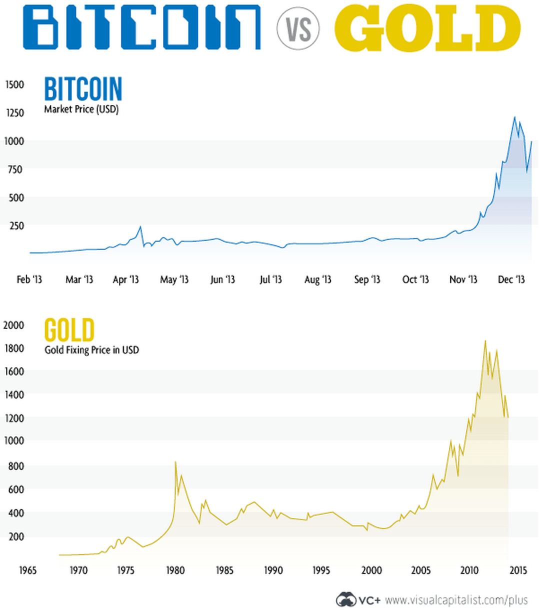 goldinfoИспокон веков золото использовалось как средство накопления капитала, благодаря своей красоте и магическому блеску. Более того, несмотря на глобальные сдвиги в системе общественных ценностей, произошедшие за последние 100 лет, его ценность не уменьшилась, а напротив, воспарила, достигнув отметки в $1,000 за унцию во времена не столь отдаленные. Однако теперь на сцене появился новый  цифровой соперник,  график движения цен которого сопоставим с ценовым графиком золота.