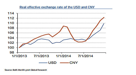 Аналогичные проблемы коснулись и Китая, вынужденного снижать процентные ставки и ослаблять монетарную политику на волне роста доллара. С июля взвешенный обменный курс юаня подскочил на 10%. Такая ситуация, в первую очередь, бьет по экспортерам. Похоже, “дефляционные силы” уже на пороге, и не исключено, что Народный банк Китая в скором времени пойдет на девальвацию национальной валюты, а возможно, и на другие меры по “отвязке” от доллара.