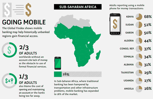 Об огромном потенциале электронных финансовых сервисов свидетельствует также большой успех на африканской земле мобильных платежей, таких как M-Pesa, сервис мобильных денежных переводов, а также Safaricom и Vodacom — сервисы для микроплатежей.