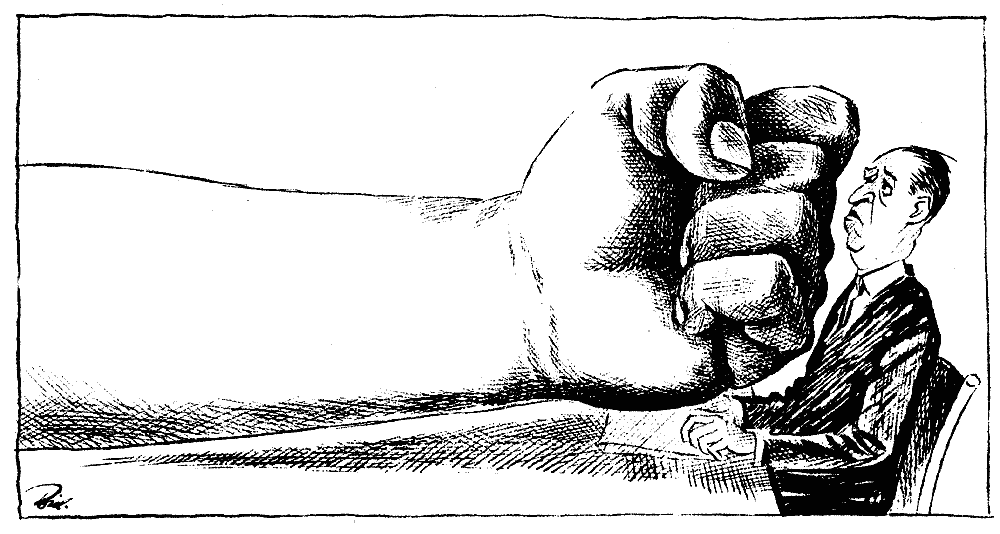 «Ты — Олигарх, что с помощью связей с государством ликвидировал всех своих конкурентов? Прекрасно. Подумай о возможностях нашего профсоюза! Мы сможем заставить любого твоего работника делать то, что ты захочешь. Тебе не нужно конкурировать за сотрудников, повышая им зарплату и заботясь об условиях труда. Только мы сможем защитить тебя от тех, кто желает свободного рынка, выведя людей на митинги в защиту «отечественного производителя»! Мы имеем связи с левыми партиями, которые сотрудничают с нами и готовы помочь в борьбе против твоих работников и сторонниками свободы. От тебя требуется всего лишь «коллективный договор», по которому рабочие будут обязаны отдавать нам часть своей зарплаты.»