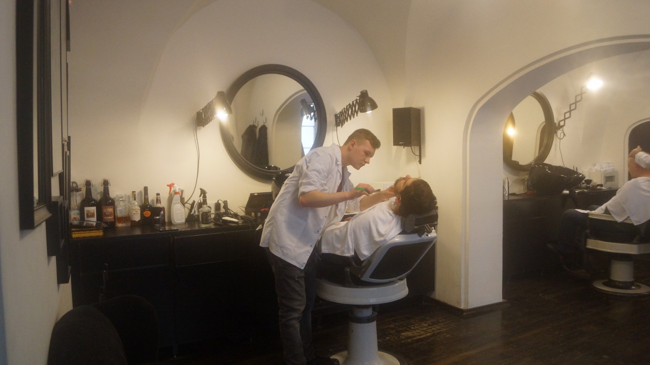 Наше время в Вильнюсе подходило к концу, и мы направились в последнее место — салон брадобреев Barzdaskuciai (Žydų g. 2-8). Он оказался также креативным местом. Как рассказали нам сотрудники, владелец салона любит биткойны, и здесь действительно можно ими расплатиться — однако побрить свои бороды нам так и не удалось, поскольку весь день уже был расписан. Место действительно популярное.