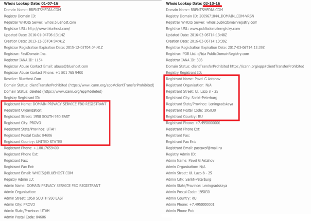 В соотвестсвии с заявлением SpiderLabs, реклама также расползлась по таким сайтам, как answers.com, zerohedge.com и infolinks.com. Законные мэйнстрим-сайты оказываются вовлеченными в распространение зловредов с доменных имен, связанных со скомпрометированными рекламными сетями. Наиболее распространенное доменное имя в текущей кампании brentsmedia[.]com. Записи регистрации доменных имен whois показывают, что домен принадлежал компании онлайн-маркетинга вплоть до 3 декабря 2015, когда действие регистрации домена истекло. Он был перерегистрирован текущим владельцем 6 марта 2016, за день до того, как началось распространение зловредной рекламы.