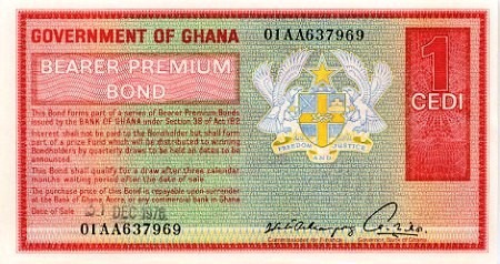 Облигация на предъявителя с номером, выпущенная правительством Ганы
