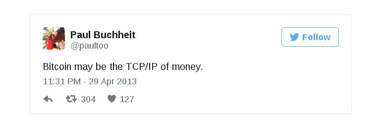 Биткойн может стать TCP/IP денег