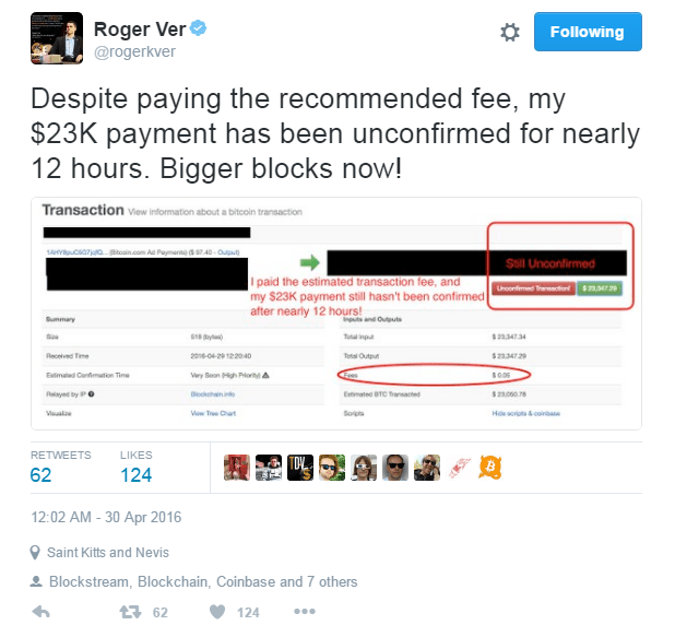 Роджер же включил заезженную пластинку, вещая о том, что люди перестают пользоваться или инвестировать в Биткойн и перешли на альткойны. При этом, он никогда и ничем не подкрепляет подобные заявления. И если бы люди действительно перестали бы пользоваться Биткойном, разве это не означало бы, что в блоках стало бы больше места?