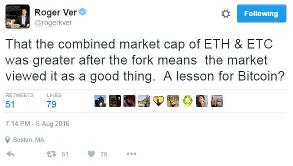 Вер жаждет немедленного увеличения размера блока, чтобы каждый мог платить биткойнами за чашечку кофе в кафе, к тому же, не тратясь на комиссии майнерам. Он не понимает негативных последствий наращивания размера блоков, которые ударят по децентрализованности сети в целом. Команда Bitcoin Core хочет разработать устойчивое дальновидное решение, которое заложит фундамент для последующего увеличения блоков. В данный момент они ставят приоритетом эффективность проделанной работы.