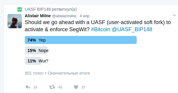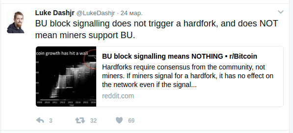 Смотрите, как технично кто-то заинтересованный распространял FUD примерно так с середины и до конца марта, пока не выяснилась лажа с ASICBOOST и сообщество не переключили на новую драму, в этот раз, я думаю, это «памп драма». А вы что думаете? Смотрите на даты.