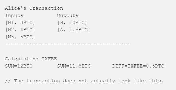 Кроме того, нет четкого указания комиссии за транзакцию. Она лишь подразумевается как разница между суммой всех выходов и суммой всех входов. А это, к сожалению, открывает возможность для хакерской атаки, когда значение одного из используемых входов оказывается большим, чем ожидает пользователь, что приводит к потере большого количества монет в счет комиссии. Это, так называемая, «комиссионная» атака.