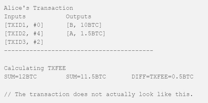 Поэтому в создаваемой Алисой транзакции не будут указаны суммы отдельных входов, а будут даны лишь идентификаторы транзакций и состояние предыдущих выходов.