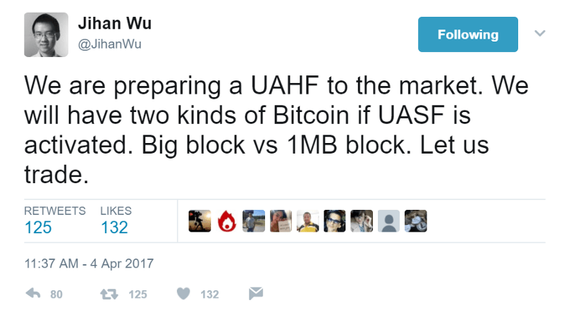 Вы можете предположить, что майнеры, поддерживающие форк и принимающие на себя связанные с реорганизацией сети риски, в случае реализации UASF, будут заинтересованы инициировать хард-форк. Действительно, в этом, по-видимому, и состоит их план: