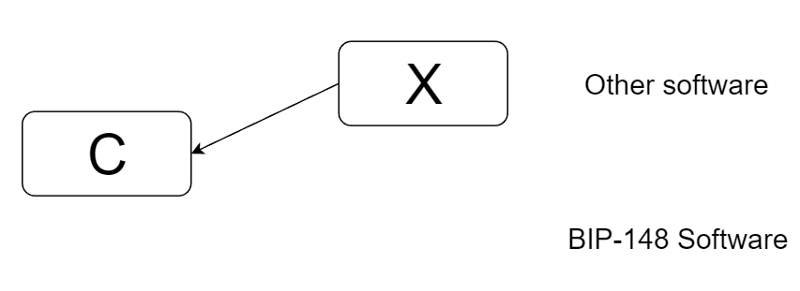 С практической точки зрения, будет сформирован некий блок X – первый блок после наступления 1-го августа 2017, не поддерживающий SegWit – который будет отклонён нодами, поддержавшими BIP-148, и принят нодами, не поддержавшими BIP-148. Для наглядности, обозначим блок, предшествующий X, буквой C. Ноды, поддерживающие BIP-148, будут находиться на блоке C, остальные ноды – на блоке X.