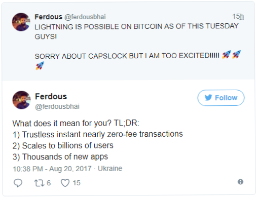 Lightning Network будет доступно для биткойна с завтрашнего дня. Только через две недели после того, как SegWit появился в сети Bitcoin, решение Lightning, которое предлагает значительно более быстрые и дешевые транзакции для большего числа пользователей, может появиться раньше запланированного срока.