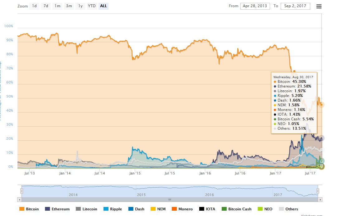 На сегодняшний день, цена криптовалюты выросла почти на $200, а ее рыночная капитализация составляет $81,5 млрд., доля на рынке — 45,2%. Поскольку Биткойн приближается к отметке в $5000, многие считают, что цена может пойти дальше. Основатель Standpoint Research Ронни Моас (Ronnie Moas), который ранее считал, что Биткойн, достигнет $7500 к середине 2018 года, недавно сказал, что он считает, что Биткойн будет стоить $20000 в течение трех лет. Потенциально есть много причин для роста Биткойна, помимо активации SegWit и напряженности между США и Северной Кореей, особенно после того, как последняя выпустила ракету, которая пролетела над Японией, прежде чем попасть в море.