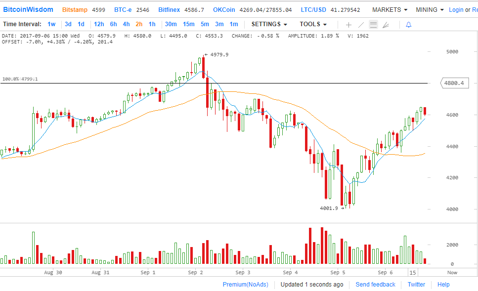 На часовом и двухчасовом таймфрейме образовалась характерная фигура технического анализа Двойное дно. Полный антипод двойной или тройной вершине означает перемену тренда, в данном случае подъем курса, по крайней мере до уровня 4800.