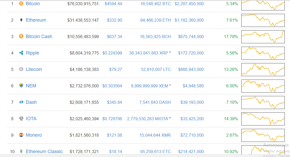 Первая десятка криптовалют выглядит весьма неплохо, все криптоактивы вышли в зеленый сектор показывая от 5 до 15% прибыли в течении этого дня.