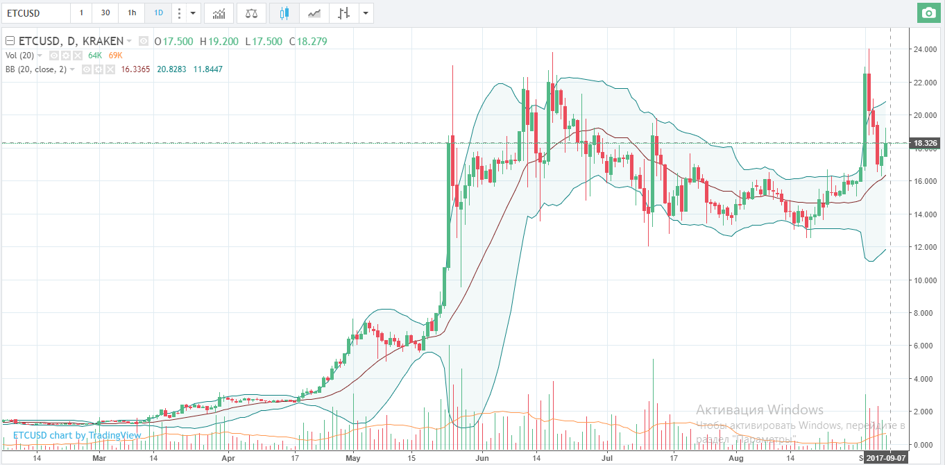Как в случае с BCH , BTC и ETH , произошло резкое снижение цены ETC по отношению к доллару США. Цена торгуется на уровне 18,5 поднявшись с $ 16,24, где она получила приличную поддержку. После формирования поддержки цена начала восстанавливаться выше $ 17,00. Во-первых, она преодолела уровень отката Фибоначчи на 23,6% от последнего снижения с максимума в $ 24.00 до $ 16.24. Это проложит путь для увеличения прибыли выше $ 18,00 в ближайшей перспективе.