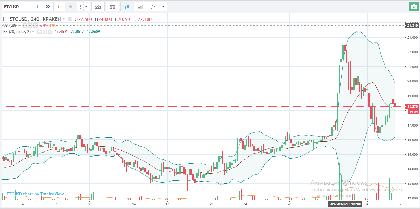 - На часовом графике ETC / USD формируется основная линия медвежьего тренда с сопротивлением на уровне 18,80 долл. США.
