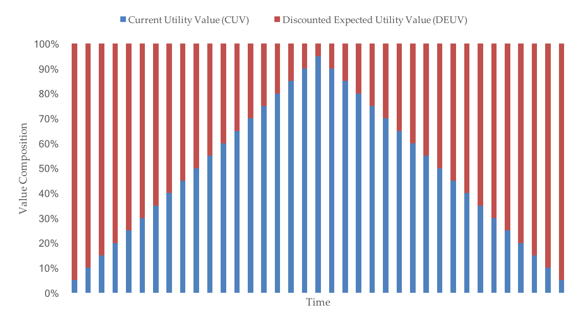 Главная идея кривой J стоит на том, как рынок оценивает криптоактивы в аспекте времени. Как я уже говорил на саммите Token Summit, я считаю, что цена криптоактивов состоит из двух видов стоимости: «текущая полезная ценность» (CUV) и «дисконтированная ожидаемая полезная ценность (DEUV)», последнюю многие называют спекулятивной ценностью. (Примечание: термин «спекулятивная ценность» может использоваться только в отрицательном свете, если кто-то также считает, что цены большинства акций с высокими темпами роста в основном состоят из «спекулятивной стоимости» вокруг будущих денежных потоков).