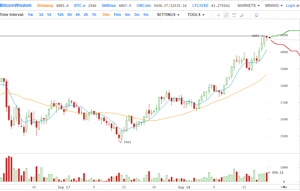 Цена биткойна выросла до 4100 долл. после серьезных рыночных потерь, связанных с недавним урегулированием в Китае.