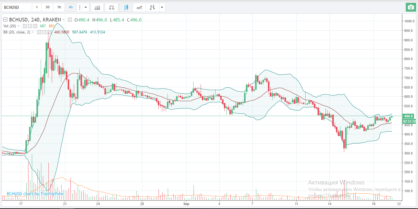 Bitcoin Cash отскочил на 64% от своих минимумов. Сейчас, он, вероятно, столкнется с сопротивлением от 50SMA и психологическим барьером на $500. Пройдя выше скользящей средней, криптовалюта может направиться к линии нисходящего тренда примерно на $580.