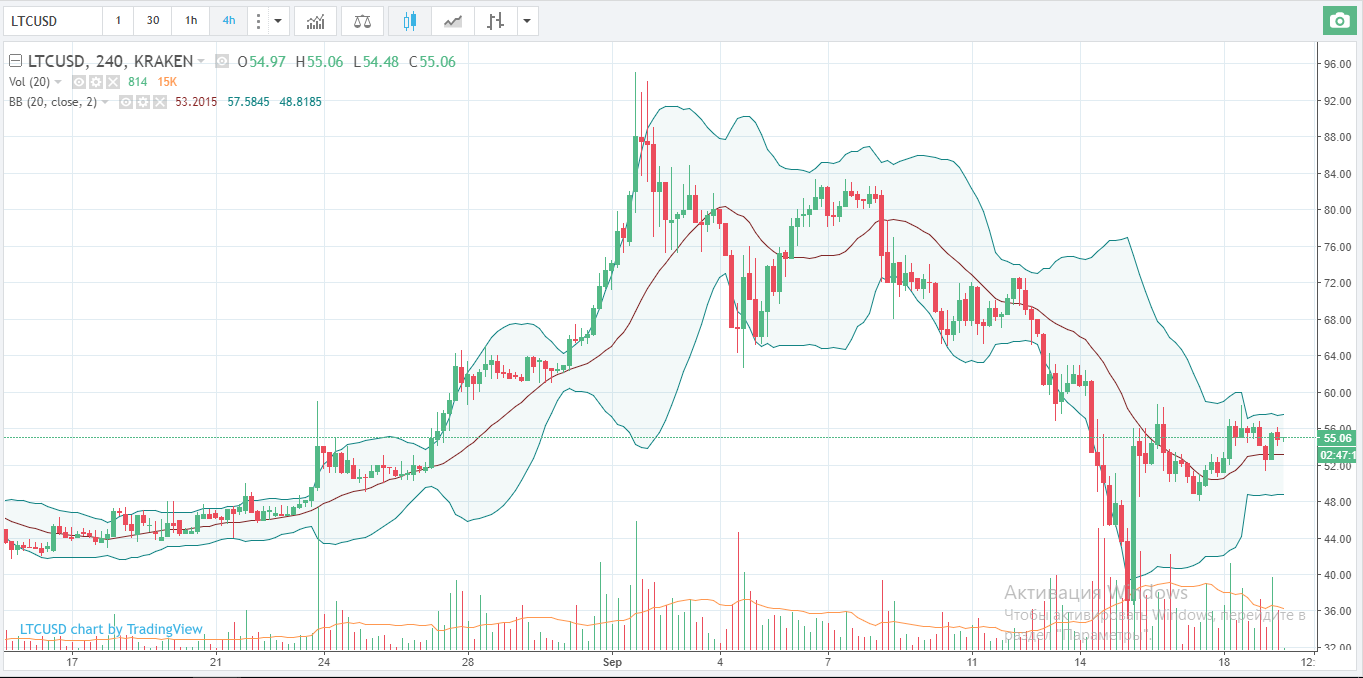 Даже после отката от минимумов, Лайткоин торгуется ниже, как скользящих средних, так и линии нисходящего тренда. У него имеется ряд сопротивлений между уровнями $56 и $68.