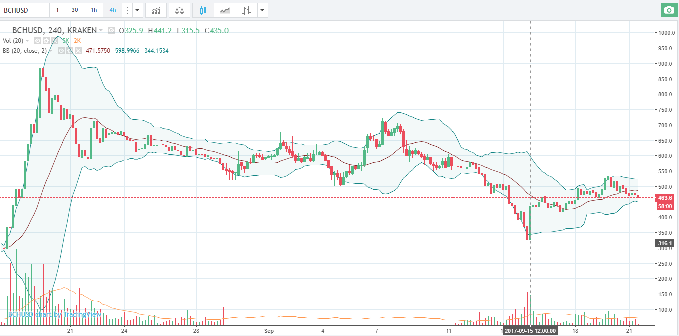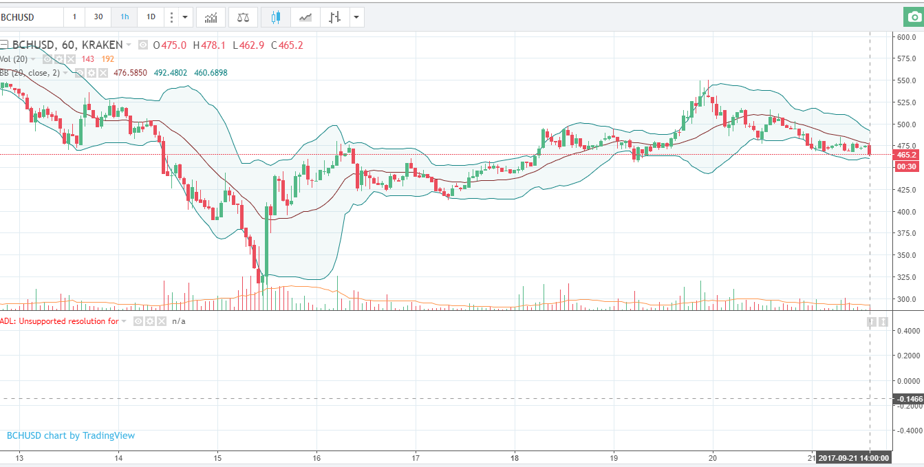 Цена Bitcoin cash корректируется вниз. BCH / USD приближается к значимой зоне поддержки около $470.