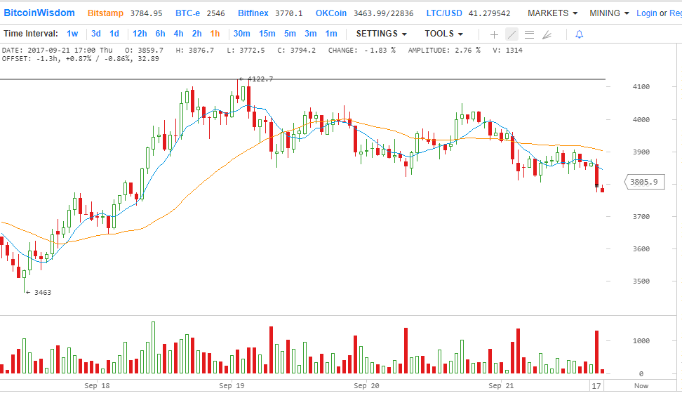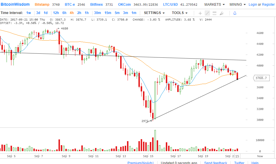 Тех обзор цены Биткойна за 21.09.2017 – медленное продвижение