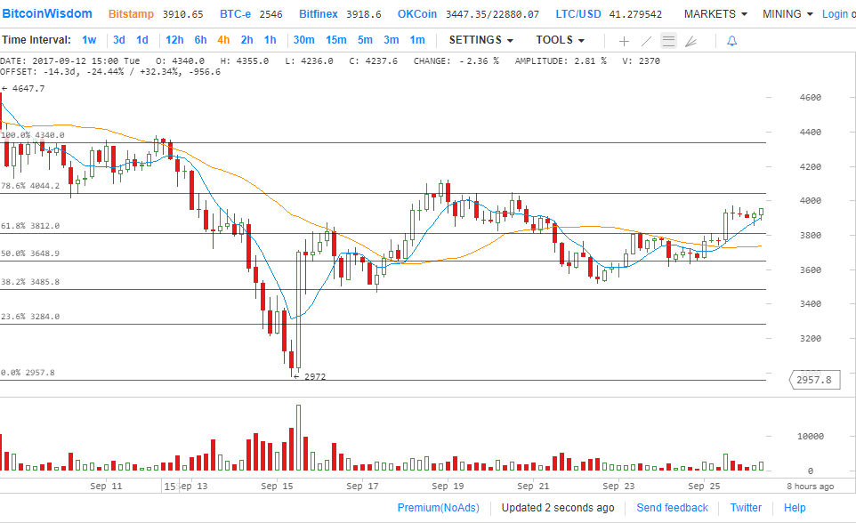 С другой стороны, цена Биткойна смогла преодолеть динамическое сопротивление 200 SMA, так что это может быть просто вопросом времени для кроссовера вверх. Продолжение бычьего сигнала также можно увидеть на 1-вом графике, а свеча, закрывающая последние максимумы около $3950-70, может подтвердить, что рост курса на подходе. Но, стохастик уже на перекупленной территории, можно предположить, что покупателям придется немного отдохнуть. RSI указывает на условия перекупленности и выглядит готовым к снижению, поэтому цена Биткойна может все еще вернуться к сопротивлению сломанного треугольника около $3700, прежде чем пойдет выше.