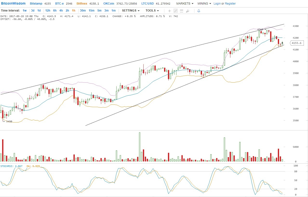 После выхода из линии нисходящего тренда, Биткойн оставался в небольшом диапазоне 26 сентября. Но, сегодня, 28 сентября, он возобновил свое продвижение вверх. $4113,15 — это сопротивление, выше которого цифровая валюта возобновит восходящий тренд превысив 4250, подъем может продлиться до $4680. Существует небольшое сопротивление на $4380; однако, как ожидается, оно будет легко пройдено.