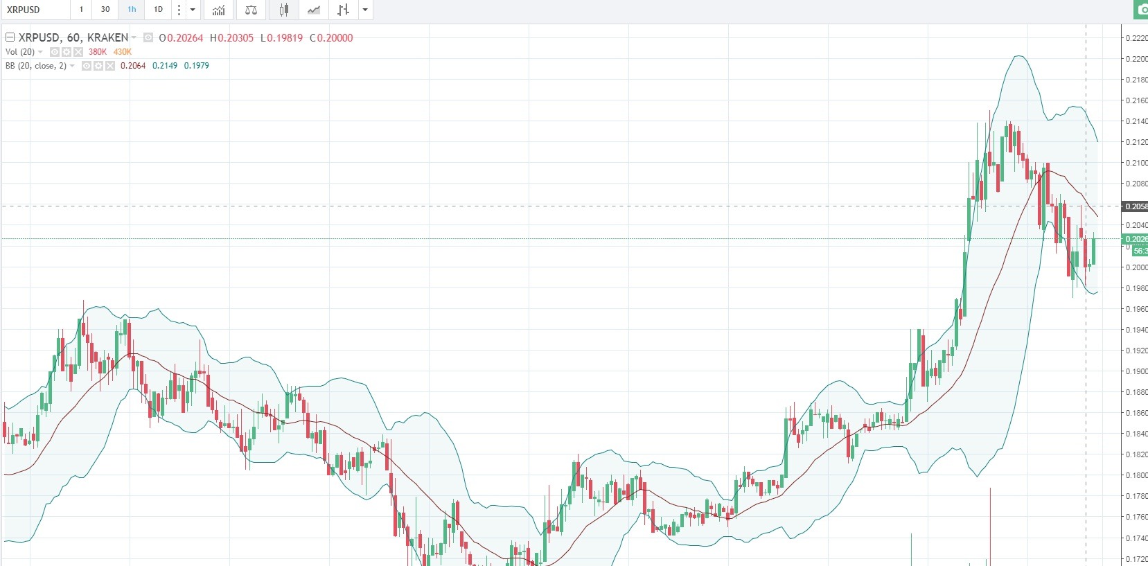 Но, это высокорисковая торговля, так как Ripple не находится в восходящем тренде. Он формирует большой медвежий нисходящий шаблон треугольника. Поэтому, лучше удерживать размер позиции около 50% от нормы.