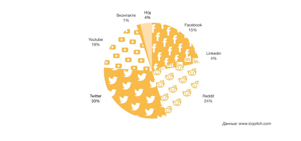 При выборе социальных сетей, в которых будет проводиться рекламная кампания ICO проекта, важно учитывать концентрацию представителей крипто-сообщества в той или иной социальной сети, рекламные возможности сети, а также страну происхождения проекта.