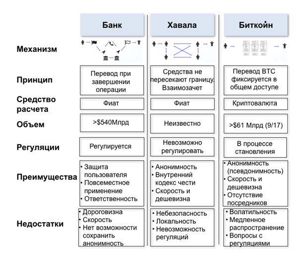 Теперь сравним Хавала и Биткойн и с классической банковской системой