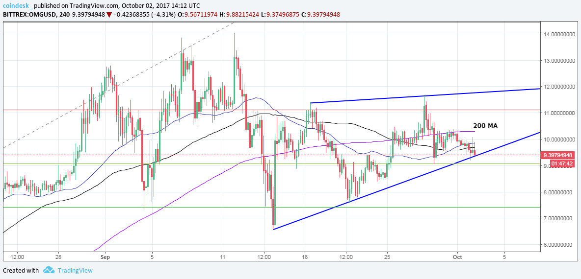 Обменный курс OMG / USD в пятницу снизился к минимуму в 8,95 долл. США, но затем быстро восстановился. За выходные токен не поднимался выше 10 долларов. 2 октября монета торгуется по 9,40 долларов. Таким образом, токен ICO потерял 5,2% за неделю и 12,80% за месяц.