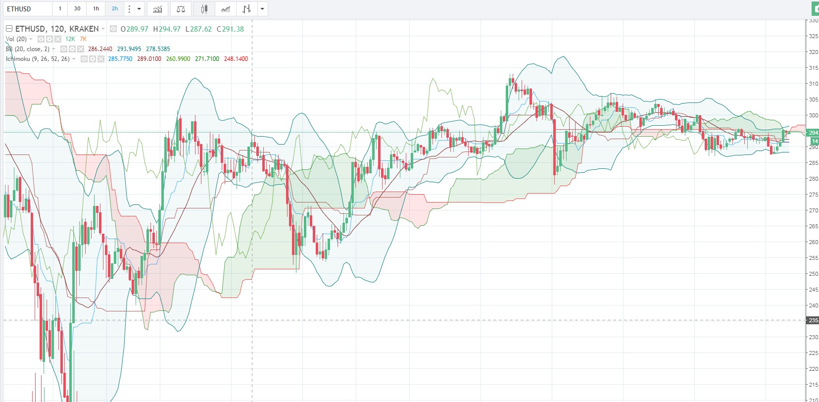 Криптовалюта консолидируется между $278,88 и $316,61 последние несколько дней. Обе скользящие средние также выравнивались, сигнализируя о действии, связанном с диапазоном. У Эфира нет истории формирования больших диапазонов.