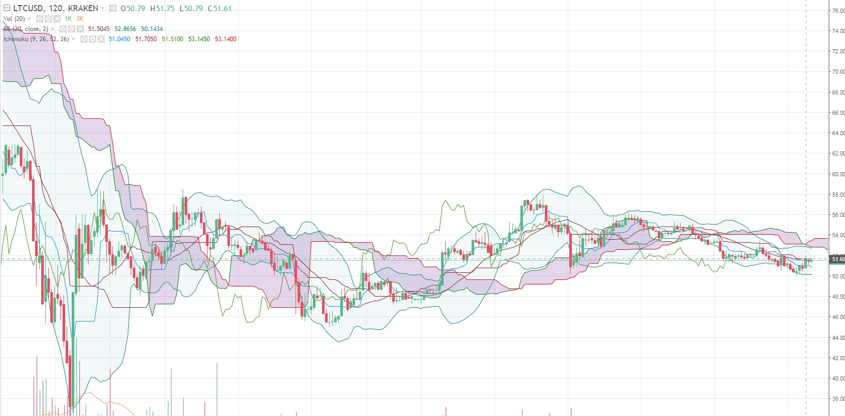 Лайткоин торгуется в пределах четко определенного диапазона $44,160 и $57,729. Поскольку криптовалюта не способна была прорвать диапазон, она, вероятно, упадет до нижнего предела диапазона, если она сломает $50.