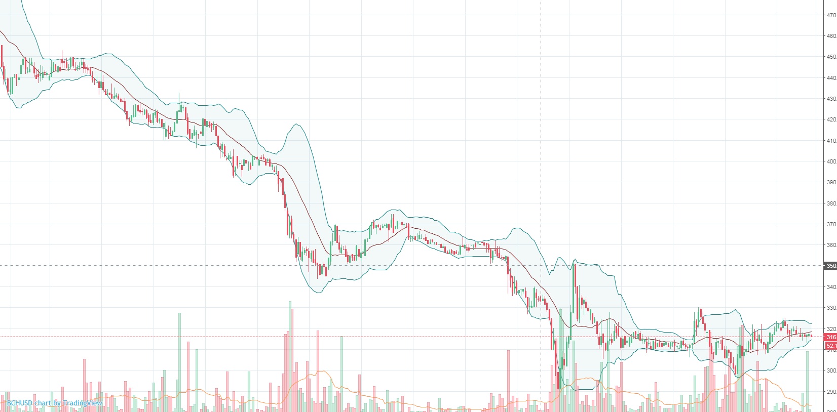 К Bitcoin Cash не проявляют интереса ни быки, ни медведи. Он продолжает постепенно скользить, пытаясь удержаться на $300.