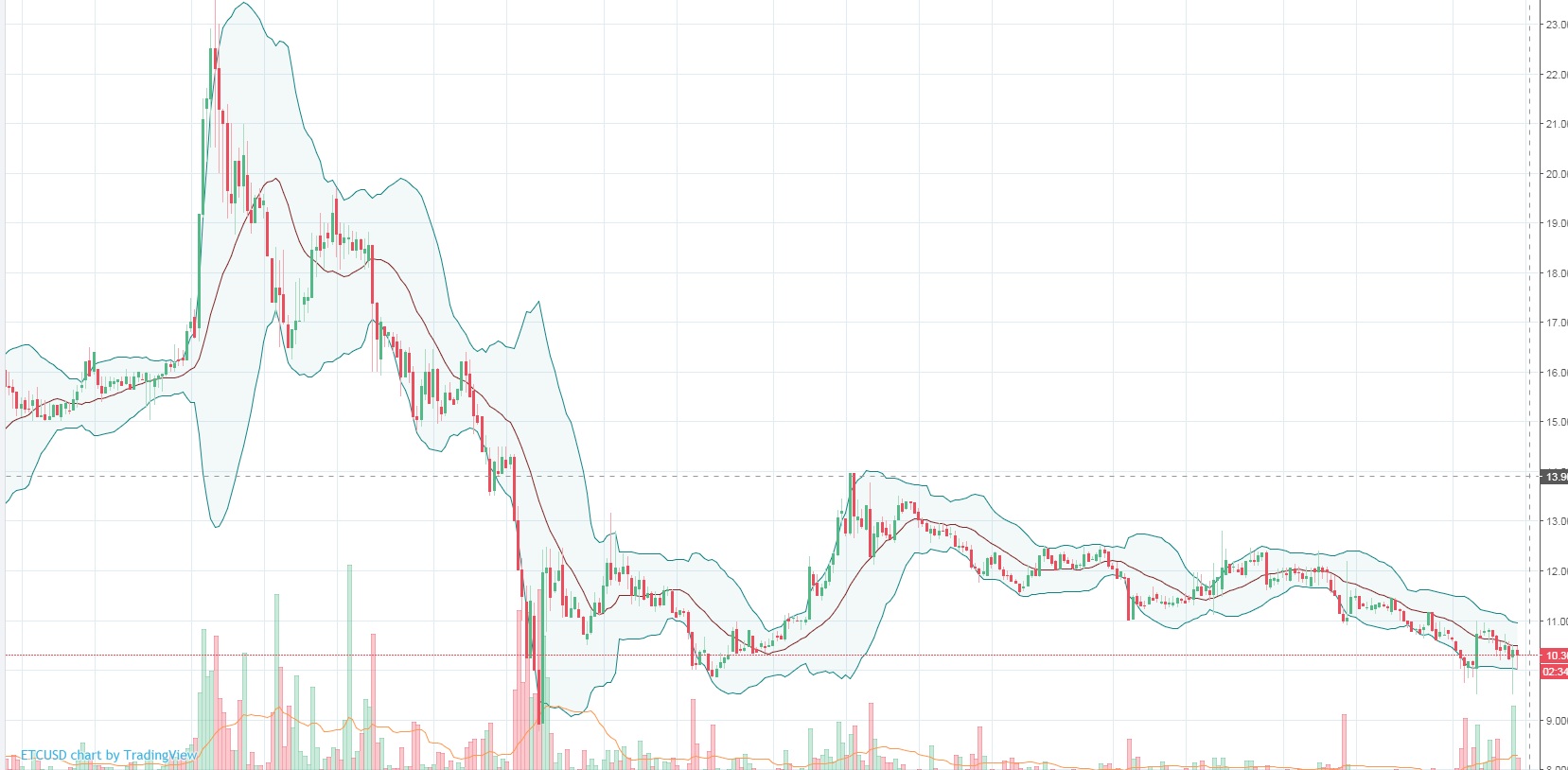 — цена Эфириум Классик не смогла остаться на $10,00 и дошла до $9,50;