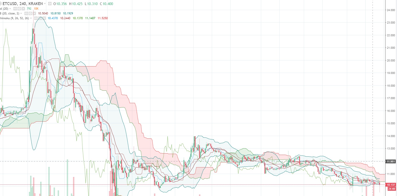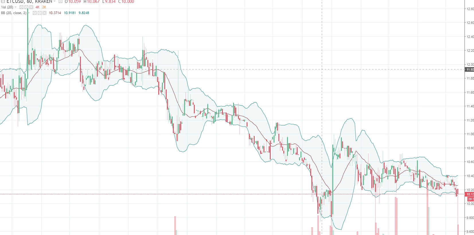 — Эфириум Классик пытается преодолеть $10,80-11,00, однако сейчас возникло сильное давление со стороны продавцов и цена в моменте опустилась до 9,5, но затем мгновенно восстановилась выше 10,0.