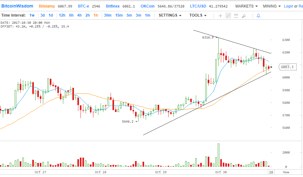 • Биткойн просто отскочил от поддержки канала и, похоже, нацелился на сопротивление канала на уровне 6400 долларов.