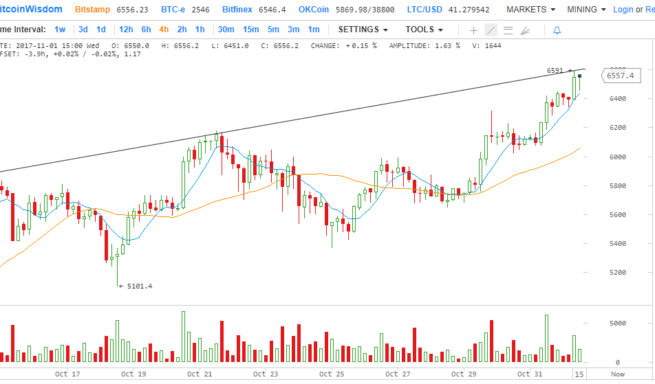 После отскока от $5100 до $6300, BTC-USD удалось выжать еще один (хотя и недолговечный) рекордный максимум и дойти до 6590.