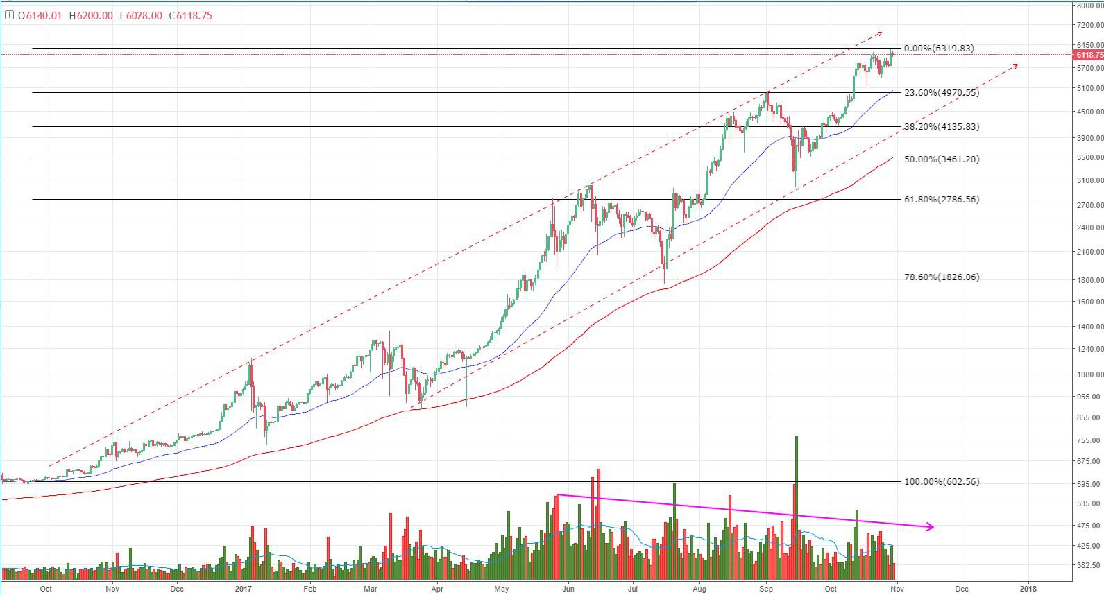 С неопределенностью вокруг предстоящего хард форка, довольно сложно предвидеть, как будет себя вести рынок и именно в связи с новым хардфорком рынок нарушит все прогнозы тех анализа и будет двигаться в своем направлении. Важно иметь в виду, что вполне возможно, что рынок будет двигаться дальше вверх; если рынок будет усиливать бычий импульс, мы можем ожидать проверку верхней линии тренда восходящего канала вблизи $7000 и даже 8000.
