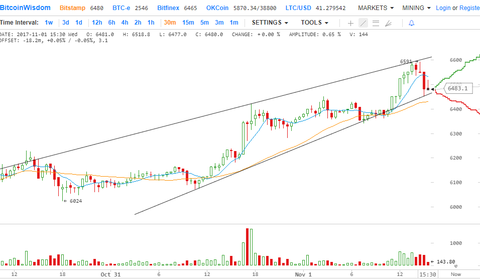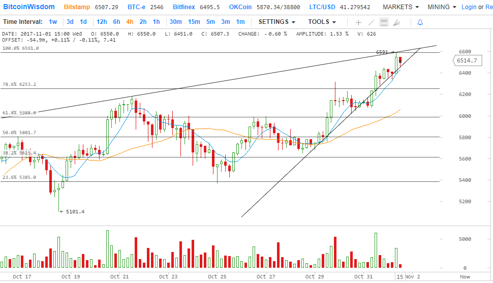 Последние несколько дней были позитивны к цене биткойна, поскольку она оставалась выше $ 6000. Ранее мы обсуждали недавний бычий предел выше $ 6000 в недельном анализе . В последнее время цена ускорилась и даже поднялась выше уровня $ 6500. Новый рекордный максимум был сформирован на уровне $ 6590, где появились продавцы и понизили цену.