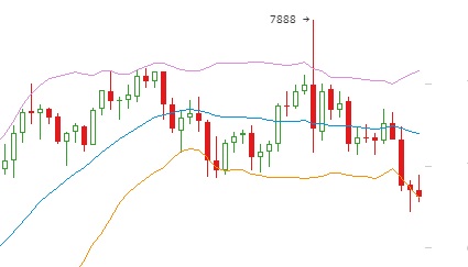 • На графике виден  классический сигнал разворота- Двойная вершина, но цена биткойна должна пройти ниже 6950, чтобы подтвердить падение.