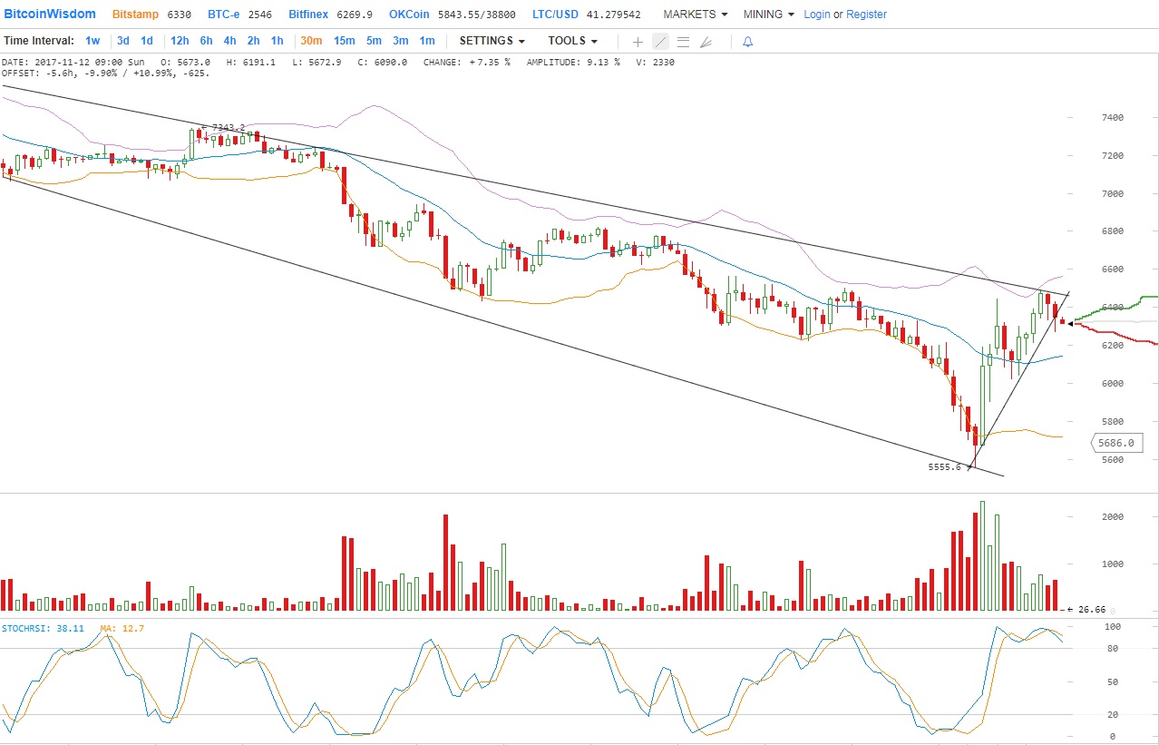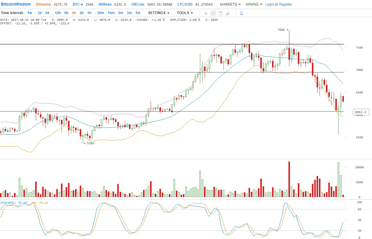 Цена биткойна переместилась ниже $ 6000. BTC / USD может продолжать снижаться, и это может даже сломать $ 5500, сейчас цена после небольшой коррекции находится на уровне 6250.