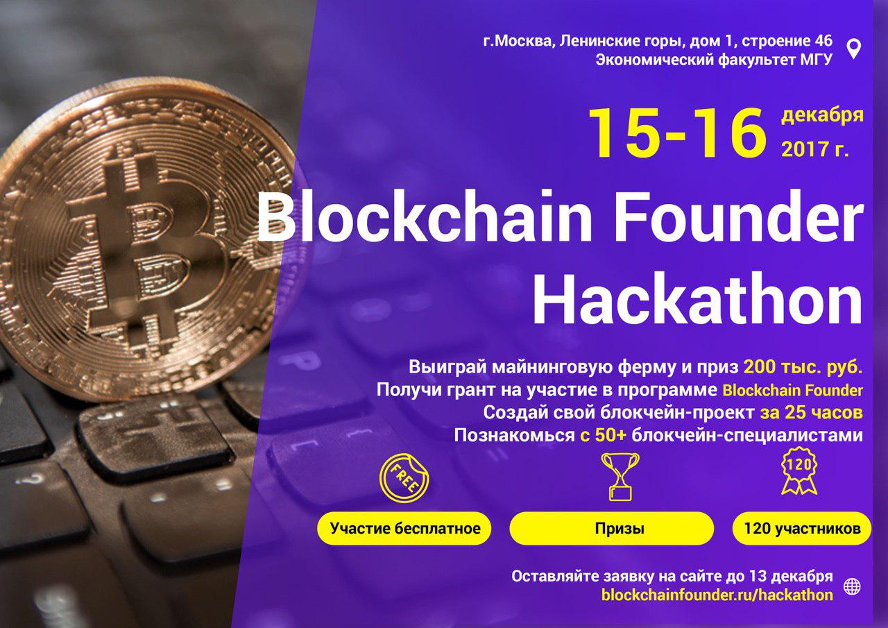 15-16 декабря на экономическом факультете МГУ состоится одно из главных событий уходящего года – Blockchain Founder Hackaton. Мероприятие объединит свыше 120 блокчейн-специалистов. В призовой фонд конкурса за создание своего блокчейн-проекта входят: возможность выиграть майнинговую ферму, грант на обучение блокчейн-технологиям в МГУ и денежные призы. Участие в конкурсе бесплатное.