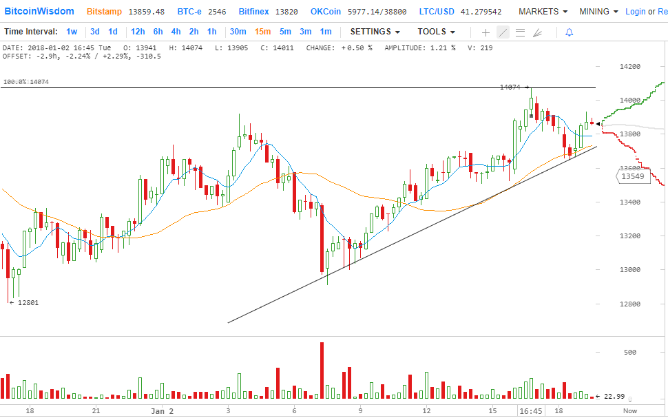 Биткойн тестирует $14 000 на мировых рынках