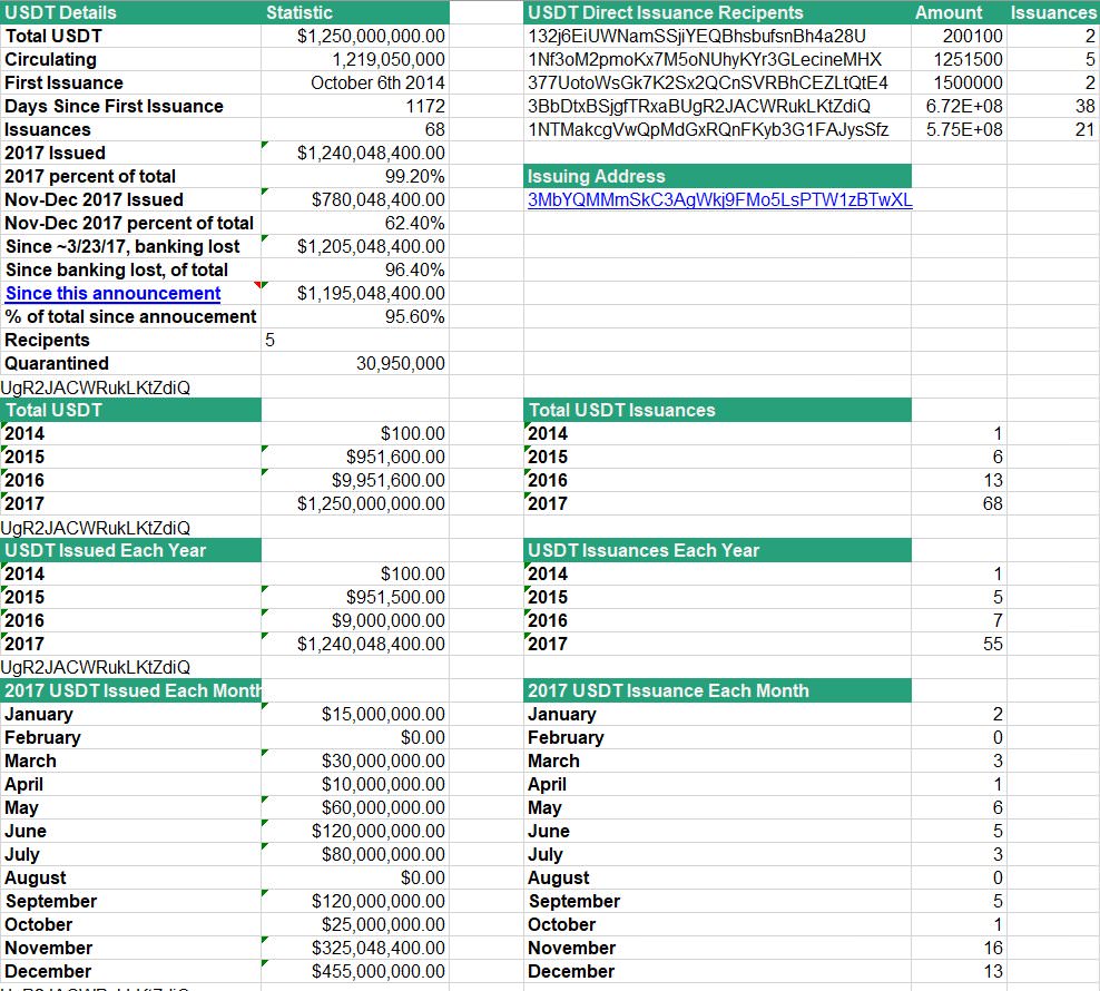 Вышеприведённая неподтверждённая статистика показывает, что в 2017 г. было выпущено 1,2 млрд USDT в сравнении со всего лишь 9 млн в 2016 г.